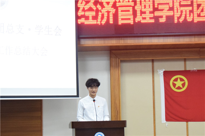 会议第一项议程 奏唱团歌 会议第二项议程 学⽣会执行主席⽯祖豪做学期⼯作总结汇报。 会议第三项议程 各部门代表对本学期的部⻔⼯作情况进⾏汇报,吸取教训,总结经验并对部⻔下一学期的⼯作计划做出部署。 会议第四项议程 团总⽀书记陈⾦辉为本次会议作总结,他指出经管团学是一个大家庭,各部门之间分工不分家,希望各团学成员明确目标,制定好下一步的工作计划,继续发扬积极向上的工作态度;牢记务实创新、甘于奉献、勇于担当的宗旨,全心全意为同学服务的理念,不断加强自身工作能力的锻炼,并希望团学成员一起为团学进一步的发展做出贡献。