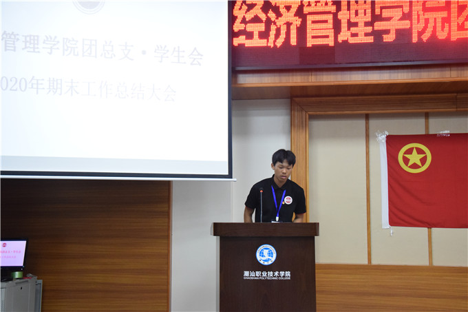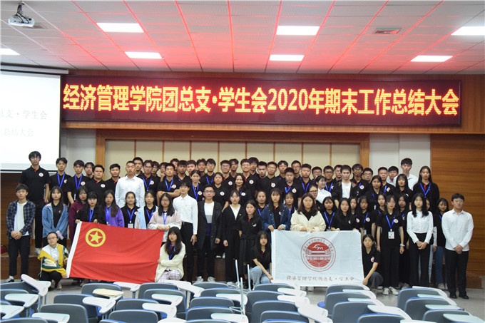 2020年12 ⽉ 29 ⽇晚,经济管理学院团总·⽀学⽣会在第⼀报告厅举⾏了 2020 学年第一学期期末总结⼤会,团总支书记陈金辉、主席团及学生会全体成员参加了本次会议,大会由学⽣会执行主席陈⼩芸主持。