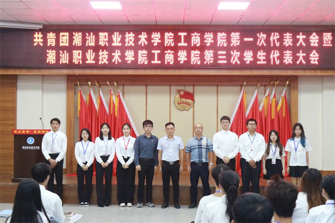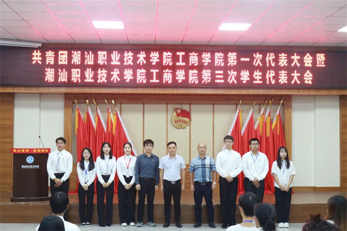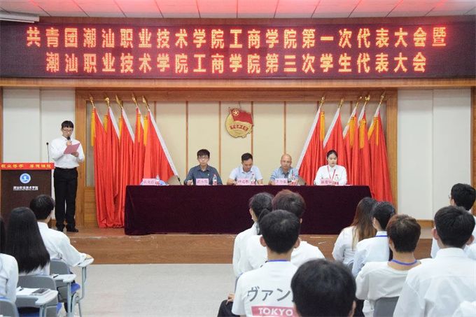 2022年6月22日,共青团潮汕职业技术学院工商学院第一次代表大会暨潮汕职业技术学院工商学院第三次学生代表大会在第一报告厅召开。学校团委书记钟逍彬,工商学院党总支书记尹华根,工商学院团委书记陈金辉,工商学院团委学生副书记林思华出席会议。大会在庄严的国歌声中开幕,学生会执行主席张光浩主持会议。 校团委书记钟逍彬代表校团委和学工部对大会的召开表示祝贺,向出席会议的全体代表和全院广大青年学生,致以亲切的问候。钟逍彬书记充分肯定了近年来工商学院团委、学生会在学生工作、团建、团改上取得的工作成果,对今后工商学院做好共青团与学生会工作提出三点要求: 一是广大青年要树立远大理想,争当理想信念的时代先锋。 理想信念是青年成长成才进步的动力源泉。青年时代树立坚定的理想信念,人生道路就会越走越宽广,无论遇到怎么样的艰难险阻,都能义无反顾、勇往直前。青年学生要将个人的理想与民族的复兴紧密结合起来,在不断为追求个人梦想、展现自身价值过程中,坚定听党话、跟党走。 二是要进一步提高创新能力和水平,切实服务好学院青年学生成长成才。 全心全意为青年学生服务是团学组织工作的出发点和落脚点,促进我院青年大学生成长成才,团学组织要充分发挥桥梁与纽带的作用,积极做好上情下达、下情上传,积极主动出谋划策,以高度主人翁意识助推学院教育事业的发展。 三是要进一步加强队伍建设,打造具有强大凝聚力的团学组织。 要求工商学院团委、学生会要不断加强自身建设,进一步增强学习习近平总书记重要讲话的思想自觉和行动自觉,引导广大团员青年努力成为社会主义核心价值观的积极倡导者。要落实全心全意为同学服务的工作作风,密切与青年学生的联系,倾听青年学生的心声,更好地代表和维护青年学生的合法权益。 强调 未来属于青年,青年创造未来。今年我们迎来了中国共青团成立100周年,今年我们将喜迎党的二十大的胜利召开,希望全体团员青年自觉将个人抱负同全社会的共同理想统一起来,共同为实现中华民族伟大复兴的中国梦,而努力奋斗! 工商学院团委书记陈金辉代表共青团潮汕职业技术学院工商学院委员会及潮汕职业技术学院工商学院学生会委员会作工作报告。 大会审议通过了《共青团潮汕职业技术学院工商学院委员会工作报告》和《潮汕职业技术学院工商学院学生会委员会工作报告》,选举产生共青团潮汕职业技术学院工商学院第一届委员会委员,以及潮汕职业技术学院工商学院第三届学生代表大会委员会委员(下附名单)。 共青团潮汕职业技术学院工商学院第一届委员会委员 陈金辉 张光浩 林思华 文雅憶 余 艳 张单嘉 杨雅茜 陈海涛 第三届学生代表大会委员会委员 林思华 张光浩 黄 婷 文雅憶 余 艳 张单嘉 肖良贞 大会第一项议程 全体起立,奏唱国歌 大会第二项议程 校团委书记钟逍彬讲话 大会第三项议程 工商学院团委书记陈金辉代表共青团潮汕职业技术学院工商学院委员会及潮汕职业技术学院工商学院学生会委员会作工作报告 大会第四项议程 审议团代会、学代会工作报告 大会第五项议程 投票选举 投票环节 现场计票 大会第六项议程 全体起立、奏唱团歌、大会闭幕 第一届团委委员与领导老师合影 第三届学生会委员与领导老师合影 大合照 共青团潮汕职业技术学院工商学院第一次代表大会暨潮汕职业技术学院工商学院第三次学生代表大会召开