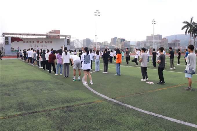 在跑步之前大家都积极做着热身运动,迎着朝阳和晨风,同学们充分展示了大学生朝气蓬勃活力四射的一面。
