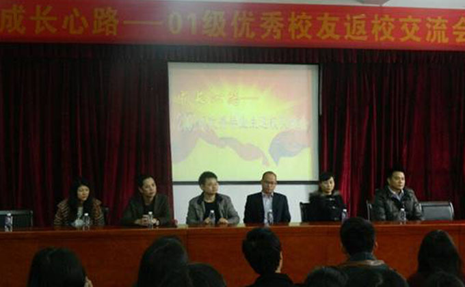 在主席台上就座的全部是2001级工管系的优秀校友。他们当中有投资公司CEO,有企业财务总监,有人民教师,有汽车教练,有银行分行行长,有证券投资经理,有开了三家餐饮分店的老板,有中海油潮州能源办公室主任等。 本次回校聚会的学长虽然来自不同城市、不同单位、不同岗位,有着不一样的身份。但有一样是相同的,那就是热爱母校、眷恋母校、关注母校的心是真诚、永恒的。他们结合自己的工作经历和创业体会,诠释了大学学习(读书)的重要性,分享自己的职业历程和创业经历,分析各自的专业优势及经验。希望师弟师妹珍惜在校时光,掌握专业知识,为踏进社会就业创业打下坚实基础。在互动交流环节,就师弟师妹提出就业创业等问题,01级的师兄师姐都非常热情地一一解答。 招生办就业处处长谢耿发表“感谢、责任、传承”六字讲话,李主任代表经管系、团总支向01级校友们表示衷心地谢意。 时间转瞬即逝,两个多小时的分享交流在真挚而热烈、愉快而高效的氛围中画上了圆满的句号。 本次交流会是潮汕学院办学十五年来的第一次。它促进了优秀校友和在校学生的亲切交流,为在校大二学生点拨职业生涯规划,具有重要的现实意义。