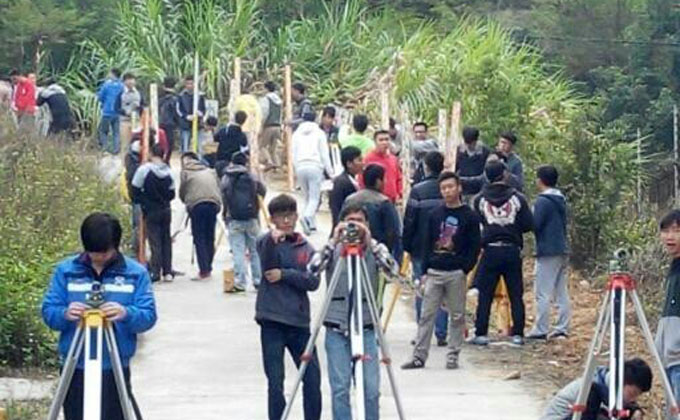 ——我系学生进行莲花山测量实训 为巩固和丰富学生课堂所学测量理论知识,理论联系实际,培养学生动手能力, 12月7日清早,建技班的同学在建筑教研室主任曹凯和谢彪老师的带领下,浩浩荡荡、兴致勃勃地来到莲花山,进行测量实训。 莲花山上,指导老师强调人身和设备安全,解说操作要领,同学们分好组,沿山路进行测量,凝神操作,交流讨论,力求得出更加精确的测量结果。 测量实训旨在提高学生的操作技能,培养学生动手能力,了解和掌握有关测量工作的基本程序,培养学生吃苦耐劳、克服困难、认真负责、实事求是的工作作风和团队合作精神。 实训师生合影留念 队伍浩浩荡荡出发 曹凯老师进行测量解说 学生实训测量进行时1 学生实训测量进行时2