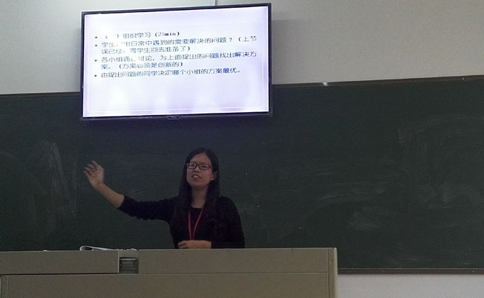 林函函老师第一个出战,作为我系年轻的“老教师”,以丰富的实战经验和精湛的PPT制作为比赛开了一个好头;陈泽华老师和林盛伟老师在课堂设计中嵌入趣味教学方法更是引人入胜;陈慕莹老师最是一道亮丽风景,她的激情感染了在座的每一位老师,精湛的课堂游戏设计、妙语连珠的演讲深深打动了现场的每一位老师,赢得观众的阵阵掌声和喝彩。