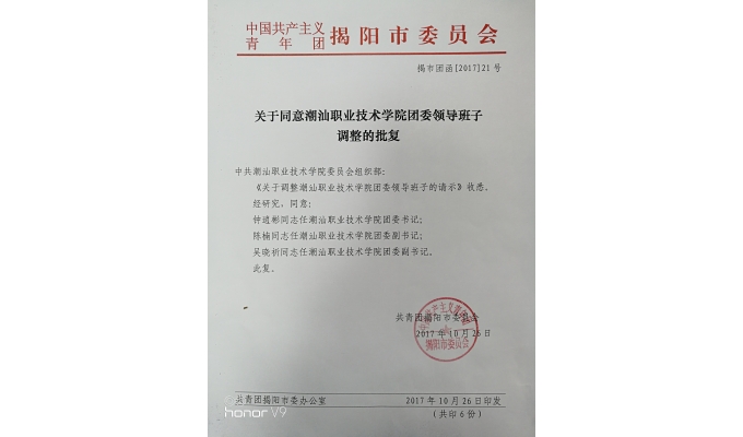 共青团 潮汕职业 技术学院委员会文件 潮院团 [2017]1 8 号 关于 启动文明礼仪 活动 月系列活动 的通知 为深化 十九大精神 的宣传教育,培育和践行社会主义核心价值观,进一步提高全体青年学生文明素养,提升校园文明层次,营造优美育人环境,扎实推进学校精神文明建设工作,...