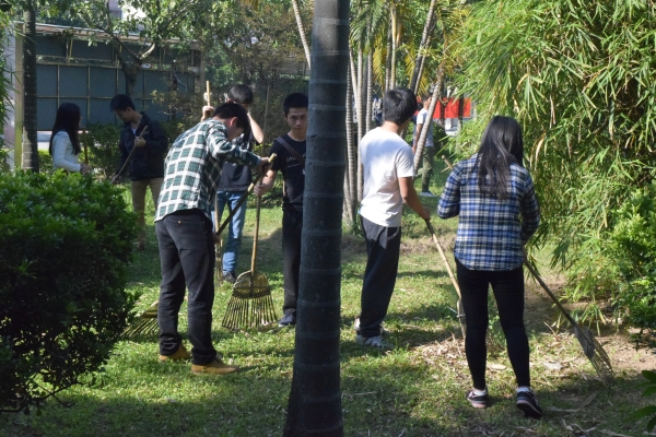 动员全体大一学生对全校环境卫生进行大扫除活动。