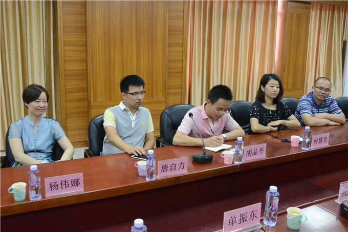 纪少游院长介绍了我院的办学历史及学院践行国家一带一路发展战略而进行的创新改革。广东省孵化协会常务副秘书长胡品平肯定了我院的战略眼光及办学思路,并为我院提出几点建议:一、创业教育融入科技企业孵化理念;二、将体制机制进一步创新;三、与国家政策紧密结合;四、多渠道宣传自身品牌;五、建立创业成功学生反哺机制。随后,来访人员就创业孵化链条的建设等分享了自身的想法。