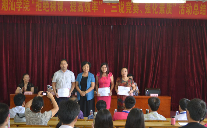 大会最后一项,院长助理刘教林对本次活动进行总结,强调了“三说”活动对学院品牌建设、内涵建设的重要性;对教师素质的提高,提高课堂教学质量起到举足轻重的作用。要求广大教师向获奖的同志学习,努力提高,共同进步,为潮汕学院的明天添砖加瓦。