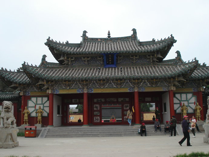 各位游客朋友: 大家好!我们现在参观的是北宋杨业府邸——天波杨府。天波杨府坐落在风景秀丽的杨家西湖北岸,南大门外的湖泊叫杨家西湖,又名杨六郎宅水泊。