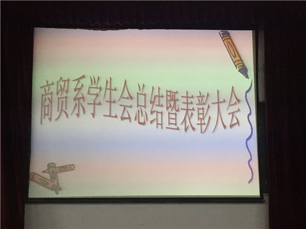 学期将近尾声,我院商务贸易系团总支学生会于2016年1月8日在科技楼101隆重举行我系学生会总结暨表彰大会,对于本学年度学生会各项工作进行一个详细的总结。