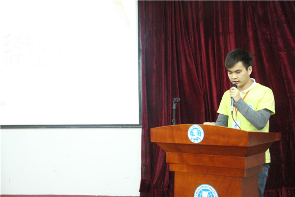 商务贸易系团总支学生会主席丘惠宇上台总结本学期各项工作