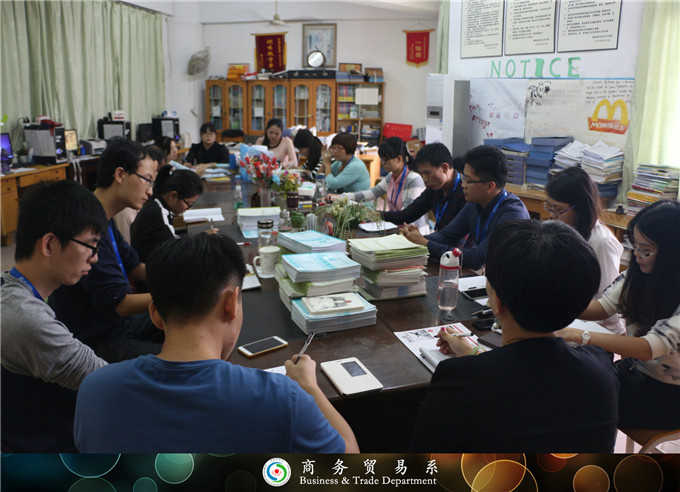 商务贸易系副主任陈壁玲、跨境电商实战学院副院长郑重、主任助理叶炳森、英语教研室主任庄映红、教务员王洁梅及我系各老师参加会议。