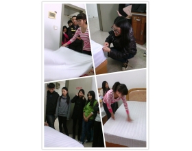 我系安排2012级旅游管理学生开展酒店客房铺床实训