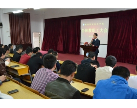 新学期再谱新篇章 我院召开 2013 年新学期全体教职工大会 3 月 1 日 ,春风拂绿、金柳印阳,我院在科技楼隆重举行全体教职工大会,会议由党政办主任张纪彦主持。 会上,副院长魏跃进发表了重要讲话,魏院长就过去一年的工作进行回顾总结,并对新一年学院的发展规划做出...