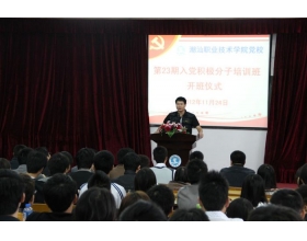 11 月 24 日,我院党校在科技楼隆重举行第二十三期入党积极分子培训班的开班仪式。党委委员、组织部部长李育华主持仪式。 党委书记韩淑芳、团委书记王克明、副书记田雨、钟逍彬及各系团总支书记均出席了开班仪式。 韩淑芳书记在开班仪式上致辞,告诫同学们要树立好正确...