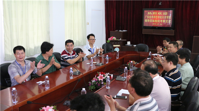 | 7月2日,广技师天河学院党委书记胡思虎一行前来我院参观交流,受到学院党委书记韩淑芳、党委副书记张业宏等领导的热情接待。