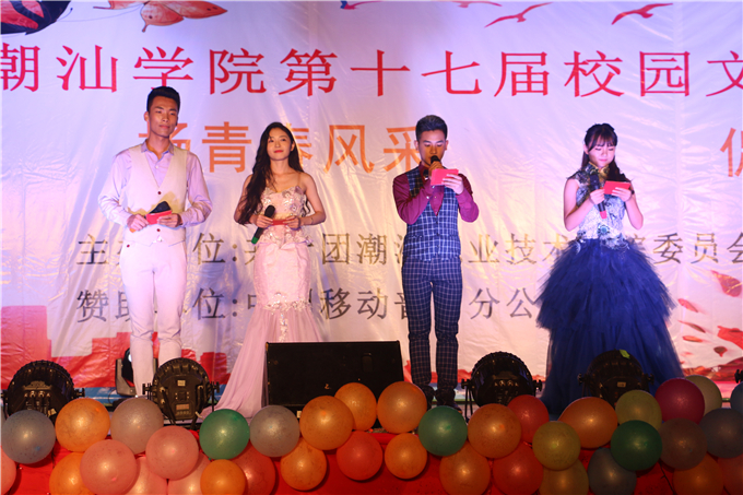 演出在星际艺术团精彩的开场舞中拉开序幕。话剧队的《面具》、尚武社与跆拳道协会的《武姿》等节目,博得了在场观众热烈的掌声。其中教师党员大合唱《没有共产党就没有新中国》等经典红歌激荡人心、震撼全场,领导老师们的精彩表演将晚会推向最高潮。最后晚会在广播站大合唱《爱很大》中拉下帷幕。 校园艺术节系列活动充分展现了我院师生良好的文化修养和艺术才华。闭幕晚会的成功举办,不仅加强了师生间的沟通、增进了师生情感,也充分展示了我院学子朝气蓬勃、积极向上的精神风貌。 ![]() 晚会主持人 ![]() 主席台领导嘉宾 ![]() 开场舞 ![]() 礼仪表演 ![]() 走秀表演 ![]() 水袖舞 ![]() 普宁市流行音乐协会会长黄伟斌助阵献唱 ![]() 跆拳道 ![]() 党员大合唱 ![]() 团委书记王克明献唱《创业之歌》 ![]() 合 影