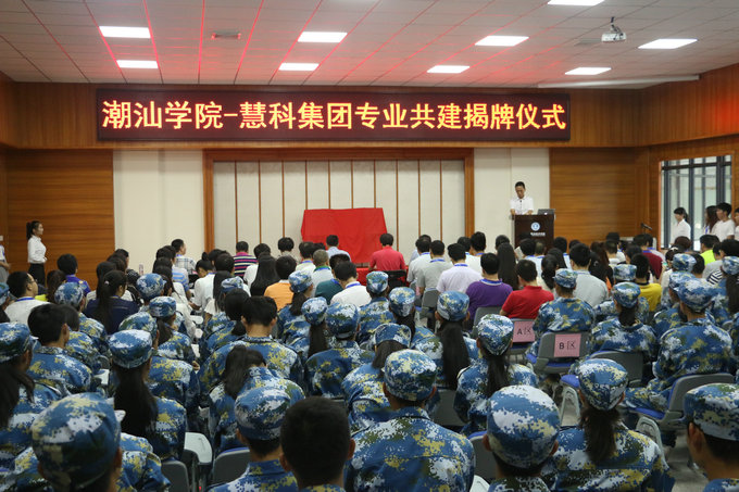 纪少游院长首先对慧科集团的来宾表示感谢并向其简要介绍了我院的办学历史及在特色教育方面所取得的成绩。纪院长指出,在“互联网+”时代里,互联网已经深度渗透到国际教育领域,政府也不断推进高等院校教学理念创新、专业建设创新、教育方式创新、人才培养模式创新。因此,在此大背景下,我院与时俱进,与慧科集团开启了首个互联网营销专业共建合作,通过更好的合作共赢方式来推动教育的发展及人才的培养。 紧接着,慧科集团首席战略官、慧科研究院院长陈滢博士发表讲话,他首先肯定潮汕学院办学思路开放、与时俱进,同时,他指出,互联网+的时代是经济共享的时代,积极探索符合国家“互联网+”战略,建设新兴专业,提高办学质量以提升学生的就业率,符合共享经济新形势的综合教育解决方案的要求。而慧科集团在办学思路与体制,教学方法与内容方面硕果累累。此次与潮汕学院的合作,对于规模培养服务区域产业升级人才、强化“互联网+”教育的示范效应起到重要的推动作用。 揭牌仪式后,慧科集团陈博士与慧科教育曾慜副总裁分别给潮汕学院师生作了《基于共享经济的在线教育》与《高校创新创业教育形势及校企合作探索》的讲座。结束后,与会领导等人与嘉宾在综合楼前合影留念。 据悉,潮汕学院作为广东省首个也是唯一一个开设新兴“互联网+”专业的全日制专科高校,对于切实推进广东省区域互联网营销等产业需求应用型紧缺人才,促进广东省区域互联网及移动互联网背景下的产业科学、协调、持续、高速发展意义重大。