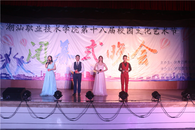 5月24日晚,潮汕学院第十八届校园文化艺术节闭幕式晚会如期在礼堂举行,学院全体师生共同享受了一场文化熏陶与视觉观赏的盛宴。 刚劲有力的开场舞《river》拉开了晚会的帷幕,随后《当你老了》、《凉凉》等耳熟能详的歌曲让观众沉浸在美妙悦耳的旋律中;《四君子》、《点绛唇》、《请茶》、潮剧《张春郎削发选段》等具有中国风和地方特色的节目备受好评。随着校园十大歌手演唱的《怎么说不爱你》的结束,晚会表演也顺利落幕。本次校园文化艺术节闭幕式晚会,表演者出色的舞台表现力和深情激昂的歌声,得到了观众们的阵阵掌声。 据悉,第十八届校园文化艺术节自4月份开展以来,我院学子以高度的热情积极参与到各个活动中。活动的举办不仅为我院学子提供了一个展现自我的舞台,也增强了我院的校园文化建设,提高学生的实践能力和综合素质。 ![]() 会 场 ![]() 会 场 ![]() 主持人 ![]() 开场舞《river》 ![]() 《四君子》 ![]() 舞蹈表演《change yourself》 ![]() 舞台剧表演《当你老了》 ![]() 舞蹈表演《卷珠帘》 ![]() 演唱歌曲《凉凉》 ![]() 《love don't talk》 模特队