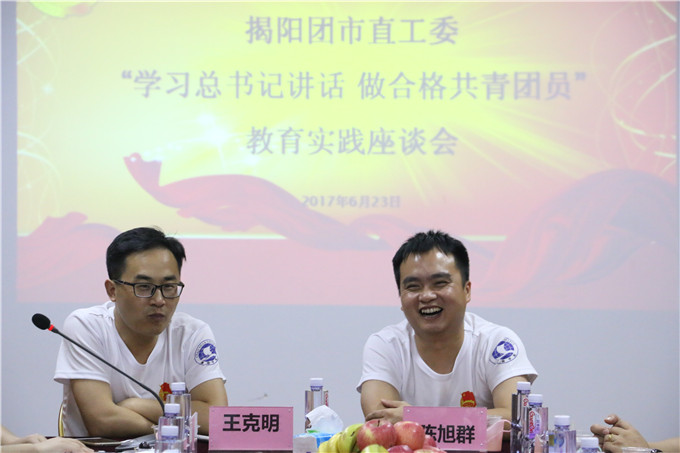 | 6月23日,揭阳团市直工委书记陈旭群一行莅临我院开展题为“学习总书记讲话,做合格共青团员”的教育实践座谈会,学院党委书记韩淑芳、团委书记、学生处处长王克明、对外合作交流处副处长钟逍彬、团委副书记陈楠进行接待。 陈旭群书记一行参观了我院服装产业学院、创业学院、VR建模中心、食品检测中心等教学场所,随后一同前往文体楼开展座谈会。 我院宣传纪录片拉开了座谈会的序幕。接着,团委书记王克明感谢揭阳团市直工委一直以来对学院的关心与支持,他详细介绍了我院的文明礼仪教育跟感恩教育。随后,各个书记就各自团组织学习“一学一做”的情况进行讨论。最后,陈旭群书记发言,他建议各个组织、单位进行资源共享,促进资源的有效利用,同时,更加深入的开展“一学一做”。 本次座谈是学院将“一学一做”学习教育融入日常、抓在经常的体现,也是学院践行“一学一做”的体现。