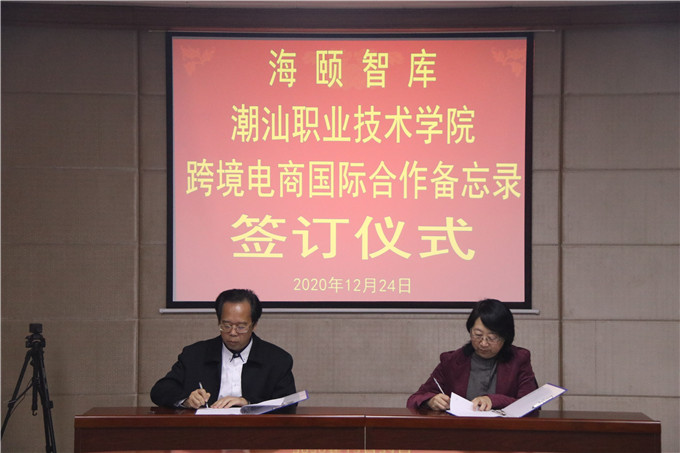 12月24日下午,我校与海颐智库签署合作备忘录,双方将在跨境电商和职业教育方面开展国际合作。![]() 合作备忘录由我校董事长纪少游与海颐智库执行主任牛丽签署。 ![]() 由于遭受疫情冲击,国际贸易受到很大影响,此次双方签署合作备忘录,意在适时开展跨境电商人才培训,通过人才培训与跨境电商结合,将潮汕学院跨境电商之产教融合的线上线下培训模式引入“一带一路”国家,在“货流人不动”的疫情背景下,为带动“一带一路”国家的小微企业,将其国家的优质产品卖到中国,从而减少贸易逆差,在多赢中开展国际合作。