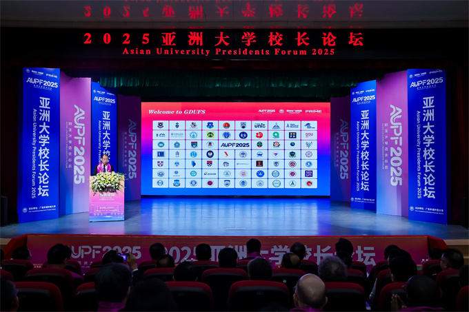 论坛开幕仪式于11月21日上午在广东外语外贸大学白云山校区明德报告厅隆重举行。广东外语外贸大学党委书记石佑启教授致欢迎辞,强调论坛主题呼应全球教育变革趋势,倡议亚洲高校凝聚创新合力,推动教育协同发展。 ![]() 2025亚洲大学校长论坛开幕仪式由 广东外语外贸大学副校长申明浩教授主持 ![]() 2025亚洲大学校长论坛开幕式现场 ![]() 广东外语外贸大学党委书记石佑启教授致欢迎辞