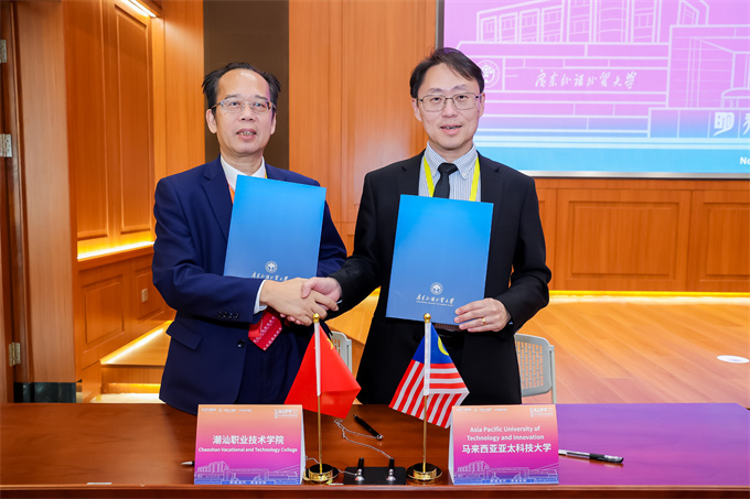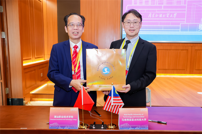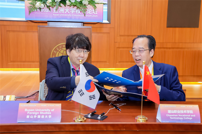 在论坛间隙,我校董事长纪少游先生与马来西亚亚太科技大学校长何振光、区域总监秦学玲进行了交流座谈,双方就未来合作展开深入探讨。创业学院院长助理林少华、对外交流教师陈树志陪同参加。 ![]() 座谈会现场 ![]() 潮汕职业技术学院与釜山外国语大学签署备忘录 ![]() 潮汕职业技术学院与马来西亚亚太科技大学签署备忘录 ![]() 潮汕职业技术学院与马来西亚亚太科技大学赠纪念品合影 2025亚洲大学校长论坛闭幕仪式由 广东外语外贸大学副校长申明浩教授主持 ![]() 闭幕式现场 广东外语外贸大学闫相斌校长宣读《广州宣言》并致闭幕辞,并宣布了下届论坛的承办单位——印度韦洛尔理工大学(VIT) ![]() 纪少游董事长出席2025亚洲大学校长论坛闭幕式 ![]() AUPF会旗交接仪式 ![]() 印度韦洛尔理工大学(VIT)副校长桑卡兰·维斯瓦纳特致辞