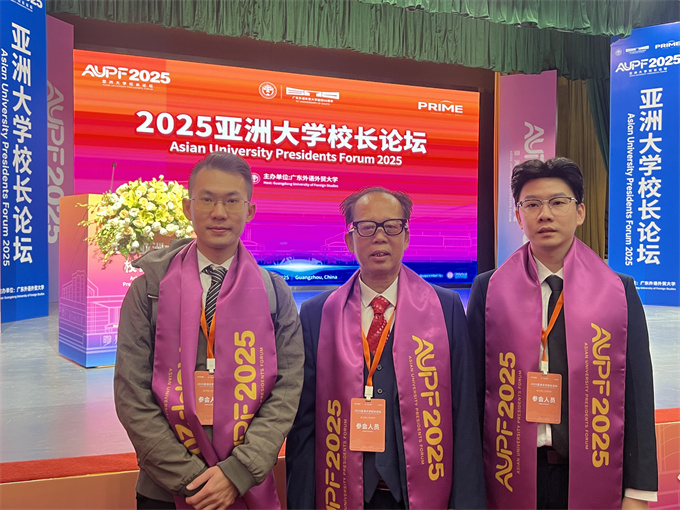 我校代表团出席2025亚洲大学校长论坛11月20日至22日,2025亚洲大学校长论坛在中国·广东广州广东外语外贸大学白云山校区隆重召开。本届论坛由广东外语外贸大学主办,论坛以“新技术与跨部门协同:开创亚洲高等教育韧性与包容性增长的新路径”为主题。吸引了来自31个国家和地区的近90所高校及机构、200多名代表,以及15个国家驻广州总领事馆代表齐聚一堂。潮汕职业技术学院作为论坛四个发起院校之一,董事长纪少游先生受邀出席,创业学院院长助理林少华、对外交流教师陈树志陪同。 ![]() 2025亚洲大学校长论坛合影 ![]() 潮汕职业技术学院董事长纪少游先生 出席2025亚洲大学校长论坛