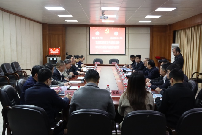 1月13日上午,韩山师范学院党委书记吴青川、党委副书记林广文一行莅临潮汕职业技术学院(以下简称“潮汕职院”)交流指导,潮汕职院校长黄文勇、党委书记李育华、财务总监罗文坤、副校长谢耿、党委副书记王笃学等领导热情接待。双方在二楼会议室召开座谈交流会,并举行党建和思政工作结对共建签约仪式,标志着两校合作迈入资源共享、优势互补的协同发展新阶段。