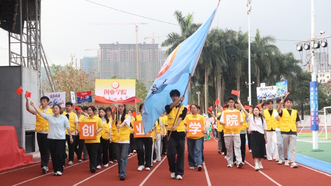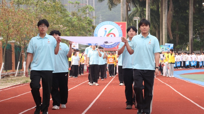 旌旗猎猎 鼓乐齐鸣 赛事序幕正式拉开 热血与荣光在此刻启程 每一份期待都化作奔赴赛场的力量 校旗队伍 会徽队伍 迈着坚定的步伐向前而来 场面壮观 且透露着少年坚定的信念 体现出潮院学子坚定信念 势将青春和热血洒满赛场的决心