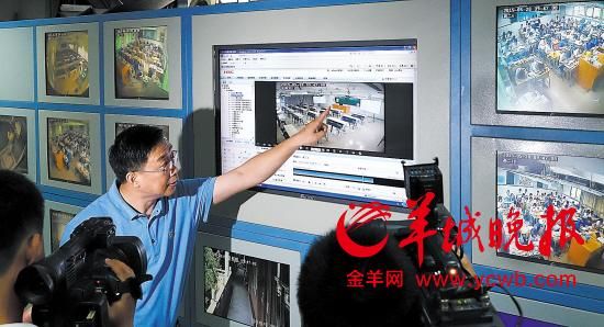 ![]() 检查组在广雅中学考场检查电子监控系统 羊城晚报记者 陈秋明 摄