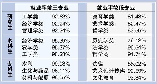![]() 广东2015年高校毕业生就业率94.8% 广州日报讯 (记者徐静 通讯员粤教宣)省教育厅昨日发布了广东省高校毕业生初次就业基本情况的统计数据。截至今年9月1日,广东2015年应届高校毕业生就业率为94.80%,其中研究生就业率为90.19%,本科生就业率为94.08%,专科生就业率为95.91%。 (广州日报)