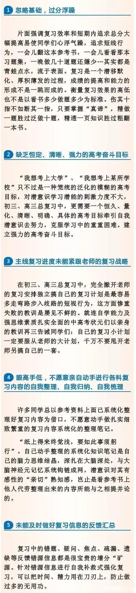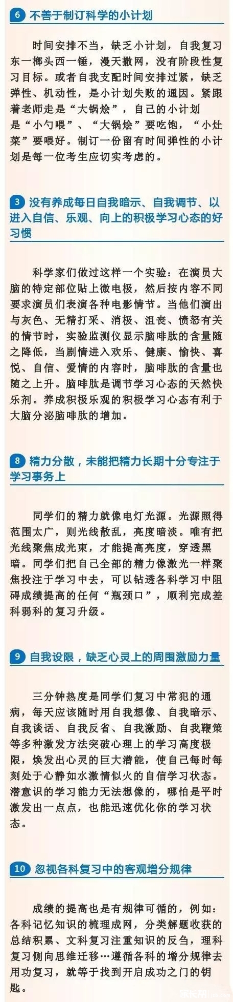 考场的考试成功者的经验大多缤纷多彩,但失败的教训原因多有雷同相似之处。我们将考试失手一些典型常见的考场失败教训汇总罗列出来,希望给接下来参加中考的同学们一面镜子,时刻返照自己,折射出中考复习中有待改进完善的地方。 ![]() ![]() |