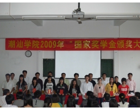 2010年6月3日下午,潮汕学院2009年国家奖学金颁奖典礼在科技楼101隆重举行。学院副院长黄良君、院党委书记韩淑芳、院长助理魏跃进、学院办公室主任张纪彦、管理系主任李景河、管理系副主任张文洲、计算机系副主任黄益平、经贸系教务员张永亮以及学生处老师和辅导员出席...