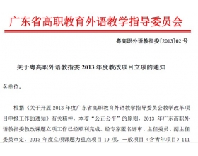 根据 粤教高函〔2013)6号及粤高职教指函[2013] 1 号 文等文件精神,努力推进理论创新,深入研究和探索有效培养应用型外语人才的途径和手段,进一步推动我省高职院校应用外语类专业和课程的改革与发展。2013年3月份, 广东省高职教育外语教学指导委员会 组织开展 2013年...