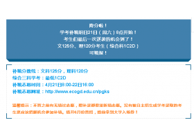 补填分数线:文科125分,理科120分 综合三科学考:最低1C2D 补填志愿时间:4月21日8:00-22日16:00 补填志愿网址:http://www.ecogd.edu.cn/pgks 温馨提示:不管之前有无填过志愿,想补录都要重新填志愿。没有被自主招生或学考录取的考生更应该把握机会参加补填。错...