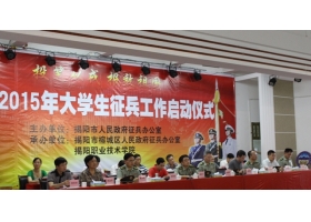 5月29日上午,揭阳市人民政府征兵办公室在揭阳职业技术学院会议厅举行“揭阳市2015年大学生征兵工作启动仪式”。市委常委、揭阳军分区司令员林楚明、军分区政委高和平、潮汕学院党委书记韩淑芳,市征兵办公室等有关单位负责人,我院师生代表参加了启动仪式。 ...