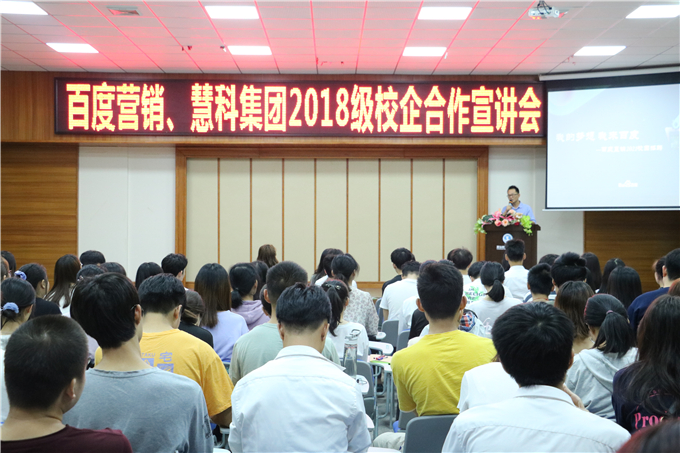 11月27日下午,创业学院在第二报告厅举办了百度营销、慧科集团2018级校企合作宣讲会。...