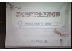 12月26日下午,我院全体教师齐聚第二报告厅,聆听了督导与师培中心组织召开的高校教师职业道德修养培训会,由党委李育华副书记主讲,督导与师培中心张桂春主任主持。...