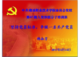5月14日上午,潮汕学院第41期党校培训班坚持党员标准,做合格党员专题讲座在综合楼第二学术报告厅举行,学院党委书记韩淑芳担任此次讲座主讲。 课上,韩淑芳书记讲解了党员的标准和基本任务,用现实生活中的例子去激励同学们积极向党组织靠拢,强调同学们应坚持大学生党员八...