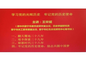 5月14日下午,潮汕学院第41期培训班学习党的光辉历史,牢记党的历史使命专题讲座在综合楼第二学术报告厅举行,原中共普宁市委党史研究室主任王宋斌担任此次讲座主讲。 课上,王宋斌主任讲述了有关中国翻天覆地二十八年、艰辛探索二十九年、崭新时代三十八年的有关历史事...