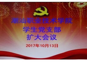 2017年10月13日,潮汕学院学生党支部扩大会议在会议室举行。学生党支部书记钟逍彬,组织委员陈楠出席本次会议。 会上,钟逍彬书记指出作为学生党支部成员应该在学习上、生活上时时刻刻起到先锋模范带头作用,有关的推优工作安排,做好十九大期间的安全维稳工作,并对第4...