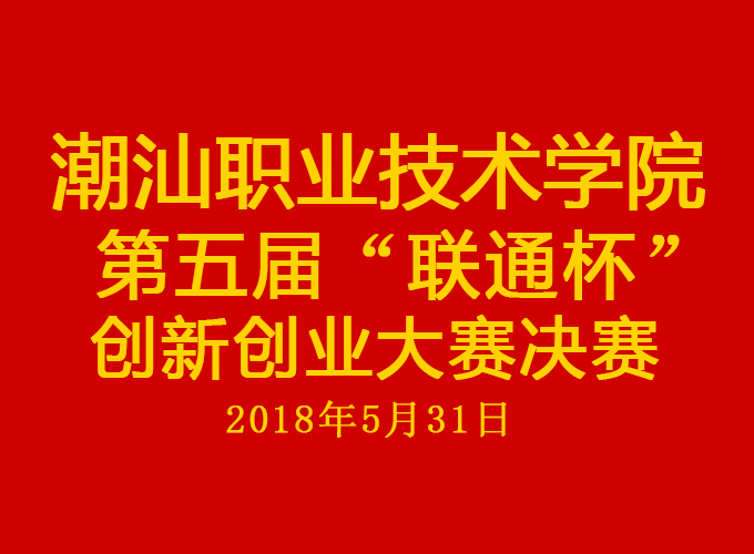 2018年5月31日,潮汕职业技术学院第五届“联通杯”创新创业大赛决赛在我院第二报告厅举行。...