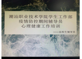 3月2日上午,潮汕学院学工部召开新学期辅导员视频工作会议,学工部部长钟逍彬,学工部老师以及全体辅导员参加。 钟部长强调要组织引导学生积极参与线上教育活动,及时有效做好学生疫情健康信息收集工作,严格做好疫情期间学生思想引导、动态跟踪和心理疏导。...