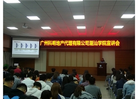 2019年5月8日,广州科明地产代理有限公司在学院第一报告厅进行专场宣讲会,本次宣讲会共提供20多个实习就业岗位。科明地产是一家专业的房地产服务公司,主要从事房地产买卖中介,住宅、商用物业租赁中介及房地产信息咨询等。公司经营上追求规范化、服务一体化,秉承“公...