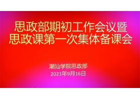 为切实提高学校思政课教学质量和效果, 9 月 16 日 下 午,思想政治理论课教学部 在 A109 举行 新学期 期初工作会议暨 第一次集体备课会。全体思政 课 教师参加此次备课会 ,会议由思政部副主任 陈凯萍老师主持。 首先,陈凯萍老师介绍并部署了思政部新学期各项教学工作...