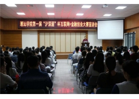 11月7号在潮汕学院图书馆5楼会议室举行第一届"沪深通"互联网+金融创业大赛,大赛宣讲会,会议由潮汕学院创业学院副院长张志强主持,沪深通公司总监做产品的介绍,当进入提问互动环节时,同学们表现出对比赛的浓厚兴趣,对相关问题争相发言,掌声不断,现场气氛非常活跃...
