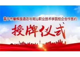 2018年12月25日下午,潮汕学院又一校企合作签约授牌仪式成功举行。授牌仪式在普宁市碧辉园酒店举行,普宁市碧辉园酒店总经理陈贵兵等管理人员,学院党委书记兼执行院长齐广武、副院长魏跃进等人参加了仪式。双方领导致词祝贺合作的建立,共同签署协议,相互授牌,合影留...