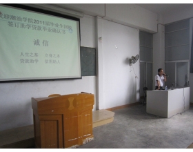 2011 年6月26日 下午,我院成功召开助学贷款诚信教育大会。本次大会由我院资助工作负责人钟逍彬老师主持,大会本着为加强我院毕业贷款学生对助学贷款的认识,提高其社会责任感,同时为我院国家助学贷款工作的开展及良性运作做好基础工作。 会上钟老师介绍了国家助学贷款...