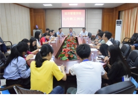 9月25日下午3点,经管学院在综合楼二楼会议室召开教职工例会,参与本次会议的有经管学院院长李晓艳、实训科科长操龙刚老师,全体专业老师和辅导员参与了本次的会议。...