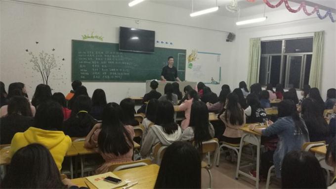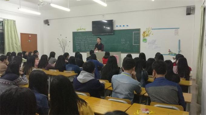 37日晚,财会金融系学生会召开动员大会。出席会议的有肖美玲老师,团总支陈楠老师以及学生会全体成员。